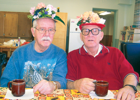 We’ve made cards for children in Africa, valentines for hospital patients, and Easter bonnets to sell at our fundraising auction. The men were particularly proud of theirs and were reluctant to take them off. We’ve listened to a blind banjo player, patted a hairless dog in a pink sweater, and enjoyed a three-hundred-pound tap dancer who threw herself around the room with incredible force and enthusiasm and then joined us for tea.